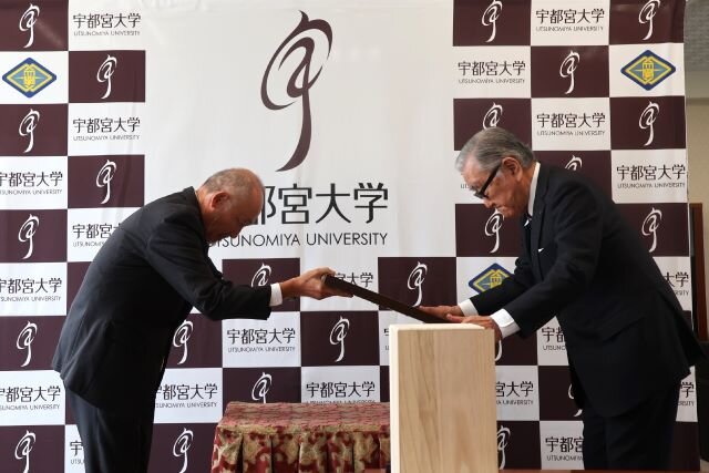 宇都宮大学3C基金に対し多額のご寄附をされた飯塚真玄様に、令和6年7月27日付で日本国政府から紺綬褒章が授与され、令和6年10月22日に池田宰学長から伝達されました。