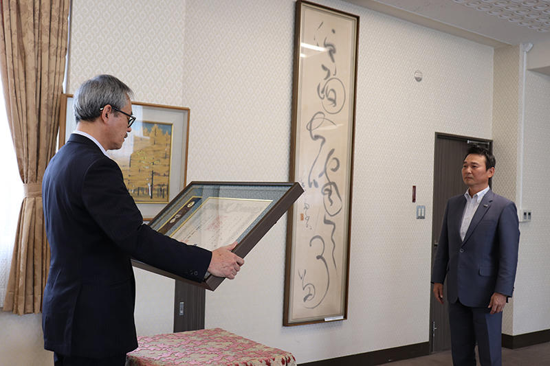 なお、関会長に対しては平成30年6月4日に、本学より感謝状及び記念品を贈呈しております。