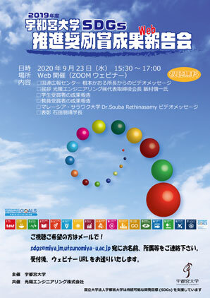 2020年9月23日 宇都宮大学の教職員・学生のSDGs推進活動を表彰した、「2019年度SDGs推進奨励賞成果報告会」がオンライン開催されました。