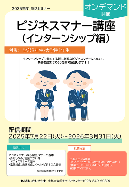 C-learning講義「キャリアセンターからのお知らせ(2025年度)」(講義コード:89331457)