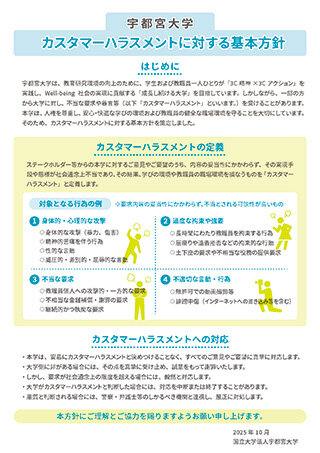 宇都宮大学カスタマーハラスメントに対する基本方針について詳しくはチラシをご確認ください。