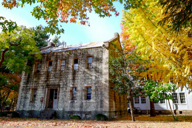 石蔵は、宇都宮高等農林学校設置2年後の1924(大正13)年に図書館の書庫として宇都宮市特産の大谷石を使用して建てられました。1969(昭和44)年に新図書館が竣工した後は学生サークルの活動場所として使用されていましたが、2011(平成23)年の東日本大震災で屋根瓦が落ち、安全対策が確保できないことからしばらく使用されていませんでした。