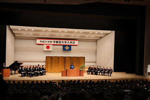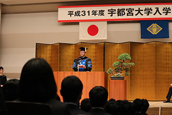 桜の花が美しく微笑むこの佳き日、宇都宮大学は、総勢1386名の皆さんを、あらたにお迎えすることになりました。皆さん、ようこそ宇都宮大学にいらっしゃいました。宇都宮大学を代表し、お一人おひとりを、心から歓迎いたします。また、これまで温かく見守り、支えてこられたご家族ならびに関係の皆さま、本当におめでとうございます。
