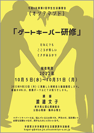 [在学生の皆さんへ]ゲートキーパー研修会(第2回学生生活講習会)動画配信について