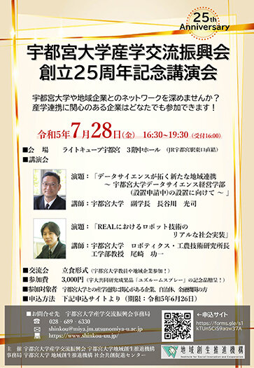 [イベント]宇都宮大学産学交流振興会 創立25周年記念講演会&交流会を開催します(7/28)