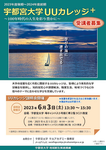 地域の皆さまが大学の授業を学生とともに受講できる「UUカレッジ」の募集を開始します。UUカレッジは、2018年度にスタートした地域貢献と社会人の学び直しためのプログラムです。