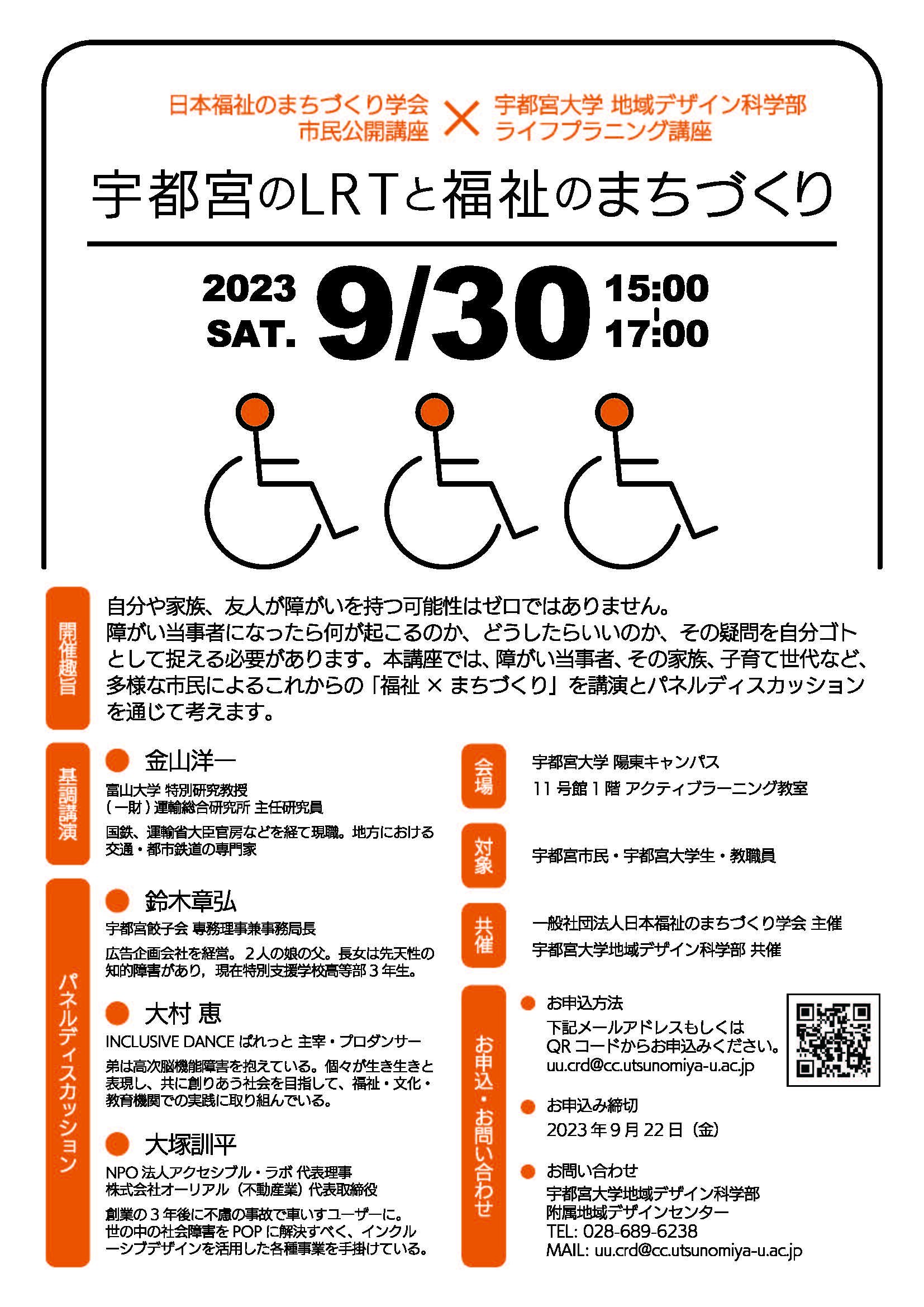 [イベント]地域デザイン科学部・ライフプランニング講座 「宇都宮のLRTと福祉のまちづくり」開講します(9/30)