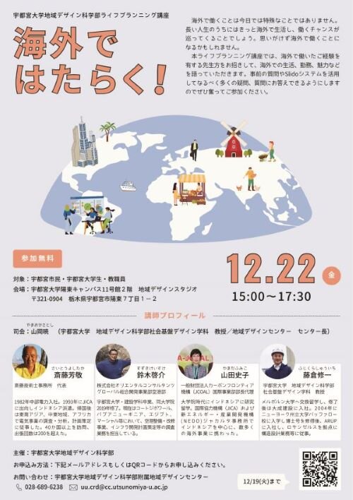 [イベント]地域デザイン科学部・ライフプランニング講座 「海外ではたらく!」を開講します(12/22)