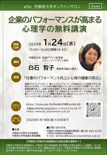 [イベント]第9回 宇都宮大学オンラインサロン 「仕事のパフォーマンス向上と心身の健康の両立」を開催します(1/24)
