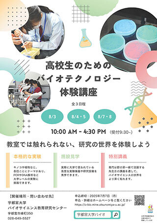 【申込受付期間延長:7/22まで】[高校生対象]令和7年度 高校生のための「バイオテクノロジー体験講座」を開催します