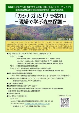 [イベント]日光ネイチャーカレッジ「第3回 「カシナガ」と「ナラ枯れ」-現場で学ぶ森林保護-」を開催します(12/13)
