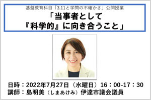 2022年度 多文化公共圏フォーラム第4回 基盤教育科目「3.11と学問の不確かさ」公開授業「当事者として『科学的』に向き合うこと」 (7/27) -