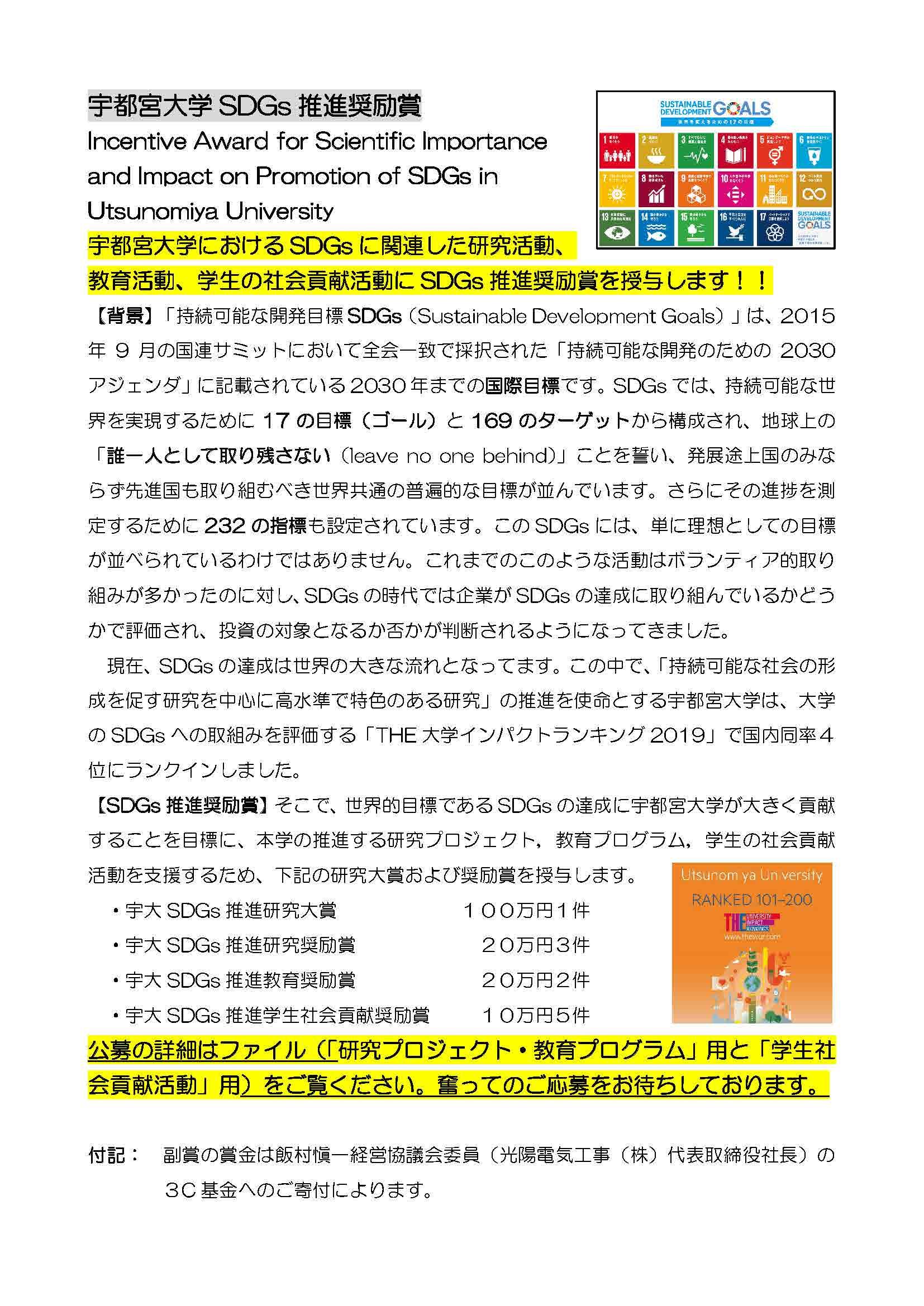 【賞 金】 宇大SDGs推進研究大賞 100万円 1件