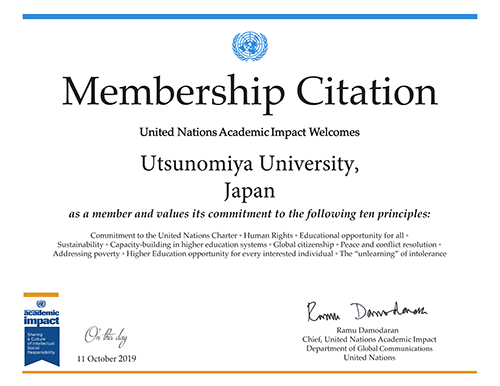 宇都宮大学は国連アカデミックインパクト(United Nations Academic Impact: UNAI)に2019年10月12日に登録が認定されました。