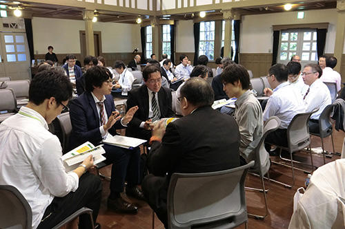 第2部は,本学の教職員・学生や全国の大学教職員・学生が参加して,「学修者のための学修成果可視化とは」という問いを軸とし,第1部の取組報告を通じて疑問に思ったことをグループごとに議論し,最も重要と思われる疑問をグループごとに発表してもらいました。具体的には,「産業界からの要望をディプロマ・ポリシー(DP)に反映させるべきか」,「学修成果可視化において,どれだけの客観性を持たせることができるか」,「学生の自己評価の限界はどこか」,「汎用的能力の可視化だけで学修成果の証明となるか」,「可視化が何のために行われ,それは学生のためになっているか」,「人文社会系のような,目標が明確ではない学部では達成すべき目標の設定が困難ではないか」といった疑問が出されました。山口大学准教授林透氏の司会により,これらの疑問について第1部の登壇者が回答し,さらに参会者より疑問が投げかけられるという形で活発な議論が行われ,学修成果可視化の取組みの課題が具体化されるとともに,今後どのような取組みを行うべきかということについて考える良い機会となりました。