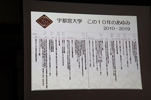 齋藤高弘副学長のプレゼンによりこの10年間の歩みを振り返りました