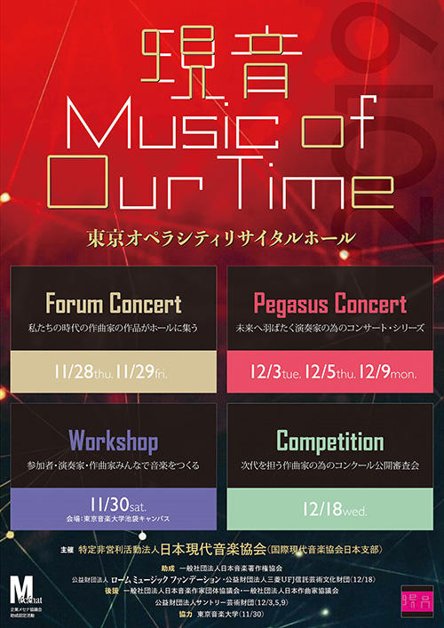 「現音 Music of Our Time 2019」は全7日間の音楽祭で、演奏会、ワークショップ、コンクールなどが行われます。フォーラム・コンサートでは2夜にわたって気鋭の作曲家17名の作品が出品・演奏されました。