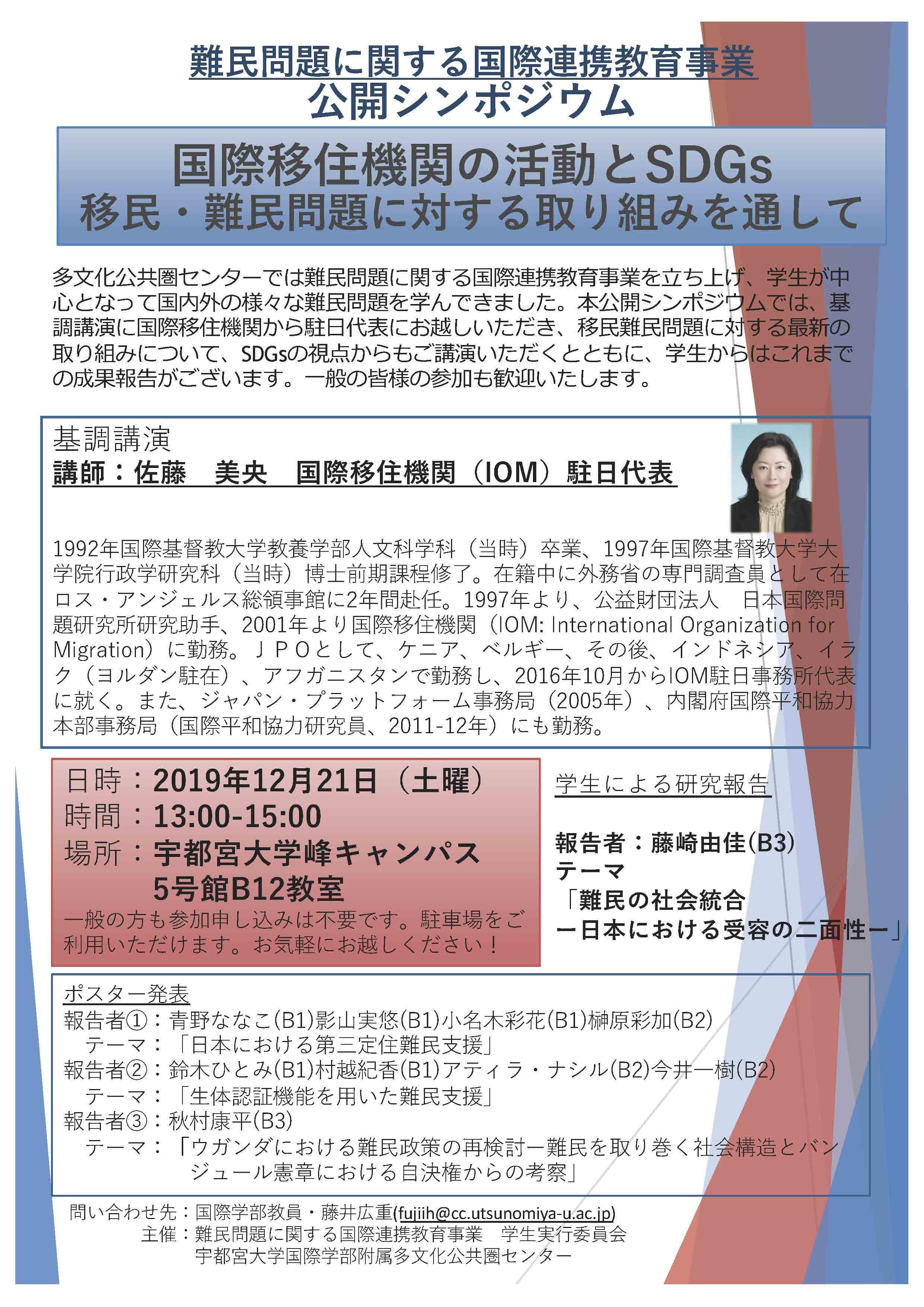 [イベント]公開シンポジウム「国際移住機関の活動とSDGs 移民・難民問題に対する取り組みを通して」を開催します(12/21(土))