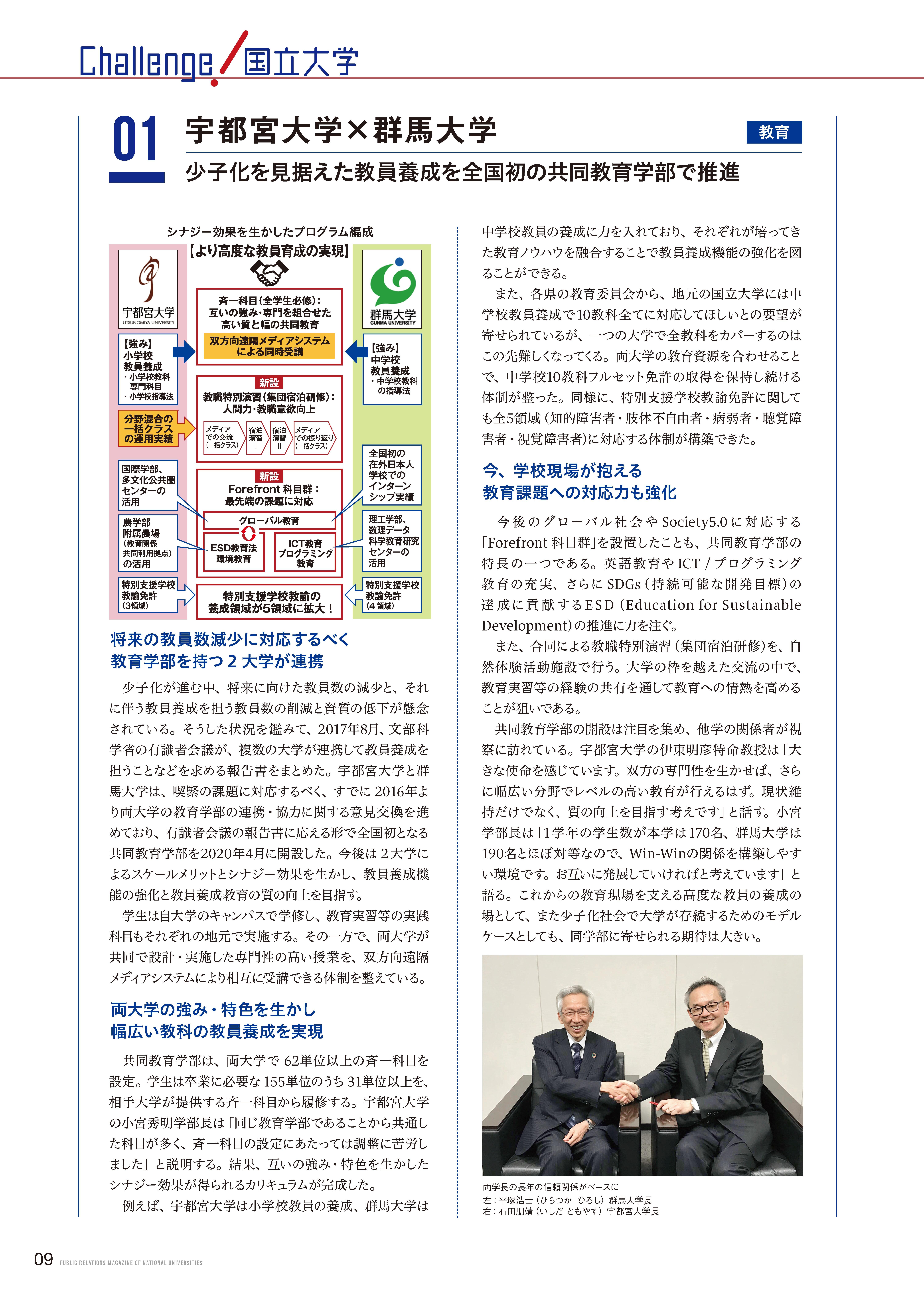 国立大学協会で発行する広報誌「国立大学」の特集「連携でつくる新しい国立大学のカタチ」において、共同教育学部の記事が掲載されています。