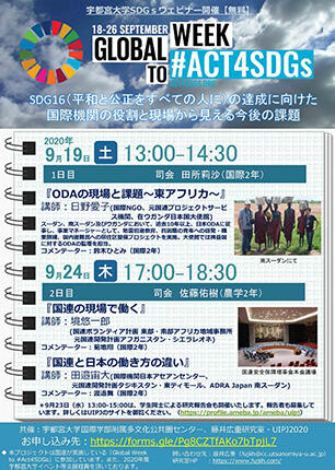 [イベント]「Global Week to #Act4SDGs」参加プロジェクト SDG16(平和と公正をすべての人に)の達成に向けた国際機関の役割と現場から見える今後の課題(9/19、9/24)