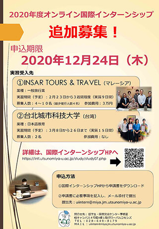 【追加募集!】2020年度オンライン国際インターンシップの参加者を募集します[在学生対象]