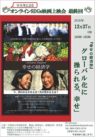 [イベント]宇大生によるオンラインSDGs映画上映会 最終回「幸せの経済学」を開催します(12/27)
