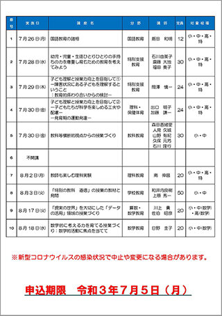 令和3年度教職員サマーセミナー受講生を募集しています