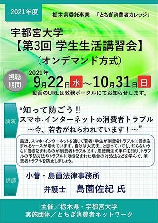 第3回学生生活講習会(オンデマンド)「知って防ごう!!スマホ・インターネットの消費者トラブル」