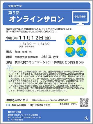 宇都宮大学第5回オンラインサロン「異文化間コミュニケーション:多様性とどう向き合うか」を開催します(11/12)