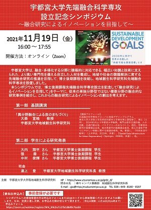 [イベント]宇都宮大学先端融合科学専攻設立記念シンポジウムを開催します(11/19)