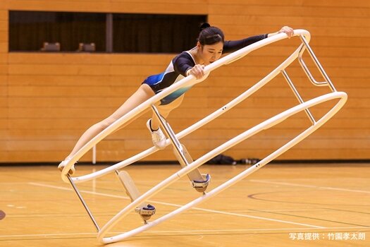 共同教育学部の松浦佑希助教は、2本の鉄のリングを平行につないだ器具を操る体操競技「ラート」で、日本を代表する選手として活躍しています。