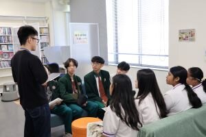 また、EPUUコモンズでは、学生スタッフが中心となり、交流が行われました。グループに分かれて、学生スタッフが宇都宮大学について紹介したり、お互いの学生生活について話したりしていました。参加した学生スタッフからは、「聞き取りの練習をもっとしなくては」という気づきがあり、本学の学生にとっても有意義な時間となりました。