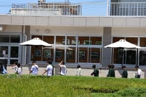その後のキャンパスツアーでは、峰ヶ丘講堂やフランス式庭園、EPUUコモンズなど、峰キャンパス内各所を見学しました。本学の学生たちも引率に加わり、建物の紹介などを行いました。