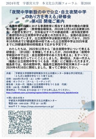 多文化公共圏フォーラム第20回「夜間中学新設の中で公立・自主夜間中学のあり方を考える」研修会第4回を開催します(7/27)