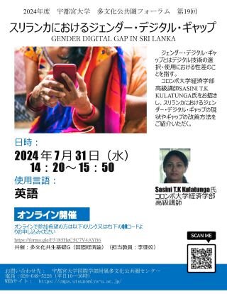 多文化公共圏フォーラム第19回「Gender Digital Gap in Sri Lanka/スリランカにおけるジェンダー・デジタル・ギャップ」を開催します(7/31)