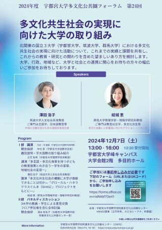 多文化公共圏フォーラム第24回「多文化共生社会の実現に向けた大学の取り組み」を開催します(12/7)