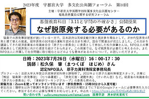 [イベント]2023年度 多文化公共圏フォーラム第10回 基盤教育科目「3.11と学問の不確かさ」公開授業:なぜ脱原発する必要があるのか を開催します(7/26)
