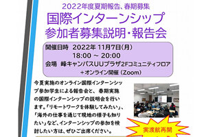 2022年度夏期報告、春期募集 国際インターンシップ 参加者募集説明・報告会を開催します(11/7) -