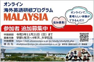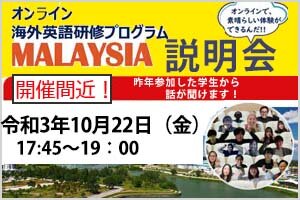 【開催間近!】オンライン海外英語研修プログラムMALAYSIA説明会を開催します[在学生対象] -