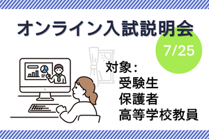オンライン入試説明会(受験生・保護者・高等学校教員対象)」を開催します(7/25) -