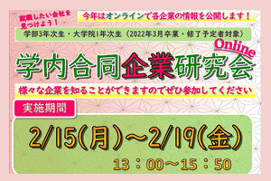 オンラインで「学内合同企業研究会」を開催します(2/15~2/19) -