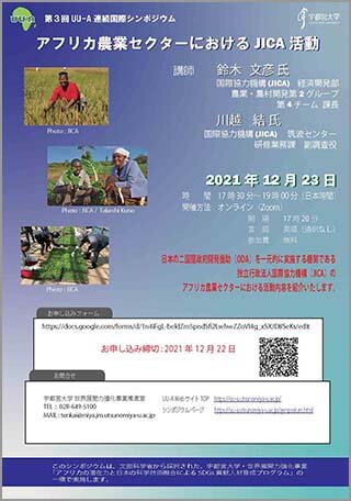 宇都宮大学が文部科学省から採択された「大学の世界展開力強化事業・アフリカの潜在力と日本の科学技術融合によるSDGs貢献人材育成プログラム」の一環による、第3回連続国際シンポジウムをオンライン(Zoom)にて開催します。
