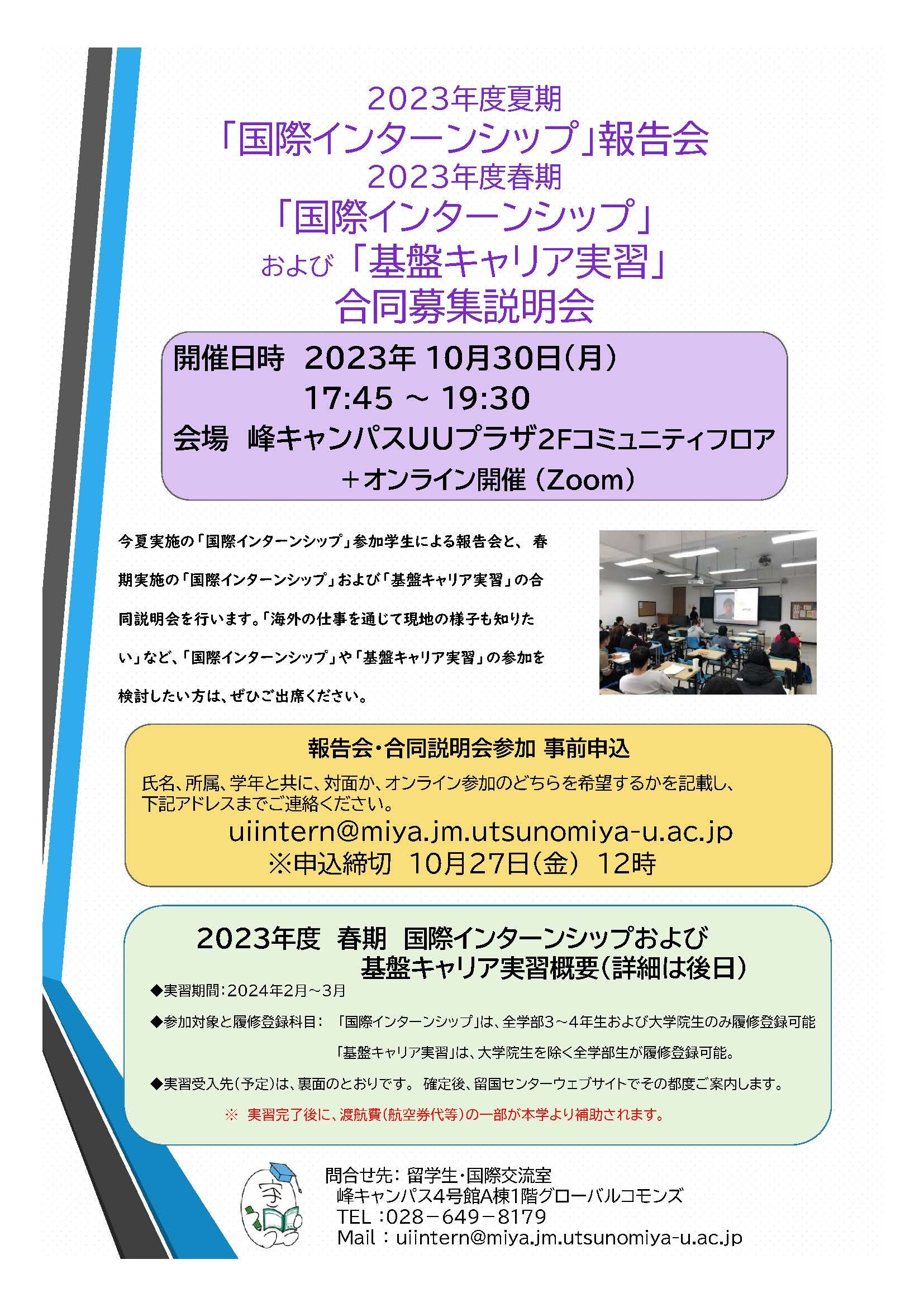 [イベント]「国際インターンシップ報告会」および「国際インターンシップ・基盤キャリア実習 合同募集説明会」を開催します(10/30)