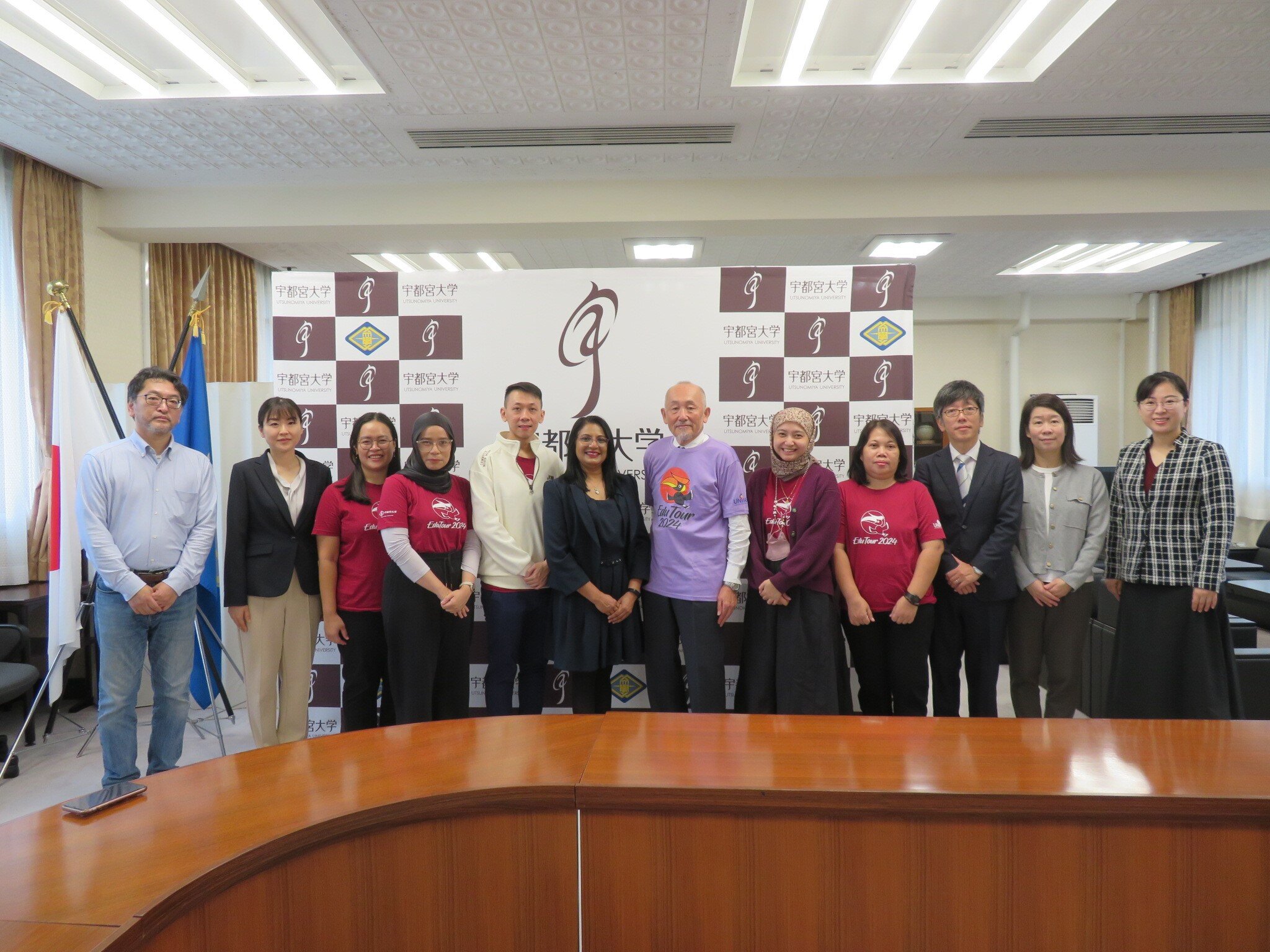 サラワク大学とは2017年に大学間交流協定を締結し、2018年からは毎年、本学学生を対象とする英語研修プログラムを実施しています。来日したサラワク大学のソウバ教授らは、2025年2月に実施予定の英語研修プログラムの説明会にも参加したほか、本学の基盤教育英語プログラム「EPUU」との授業におけるセッションや国際学部の授業見学なども行いました。