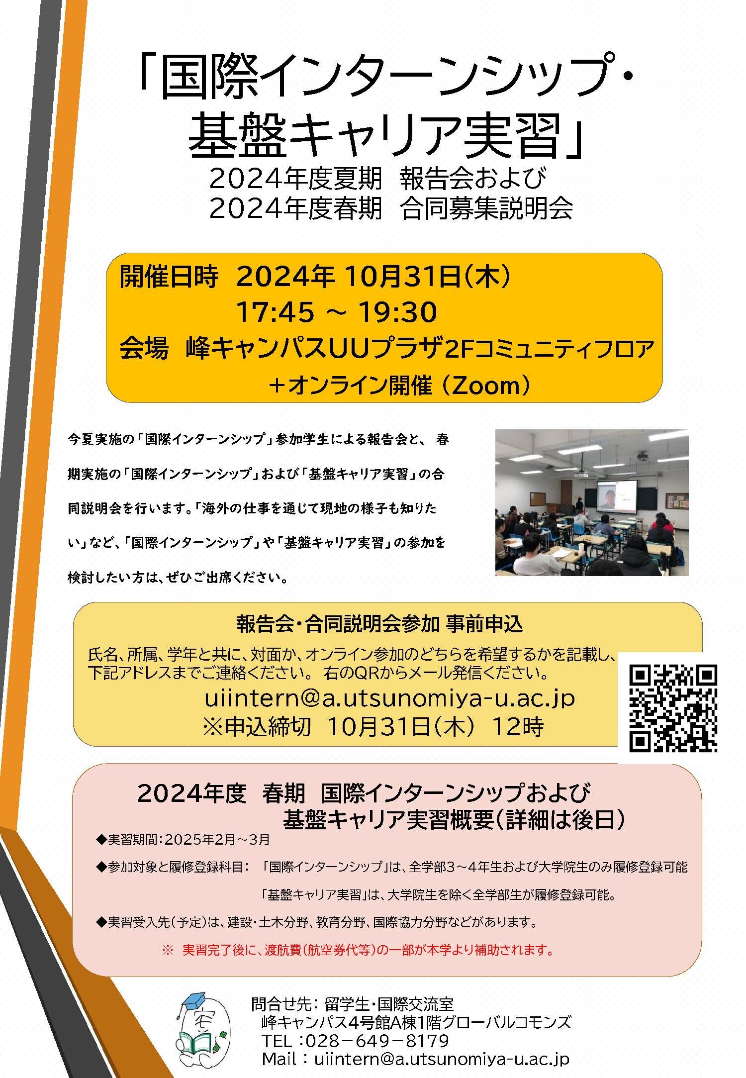 [イベント]「国際インターンシップ報告会」および「国際インターンシップ・基盤キャリア実習 合同募集説明会」を開催します(10/31)