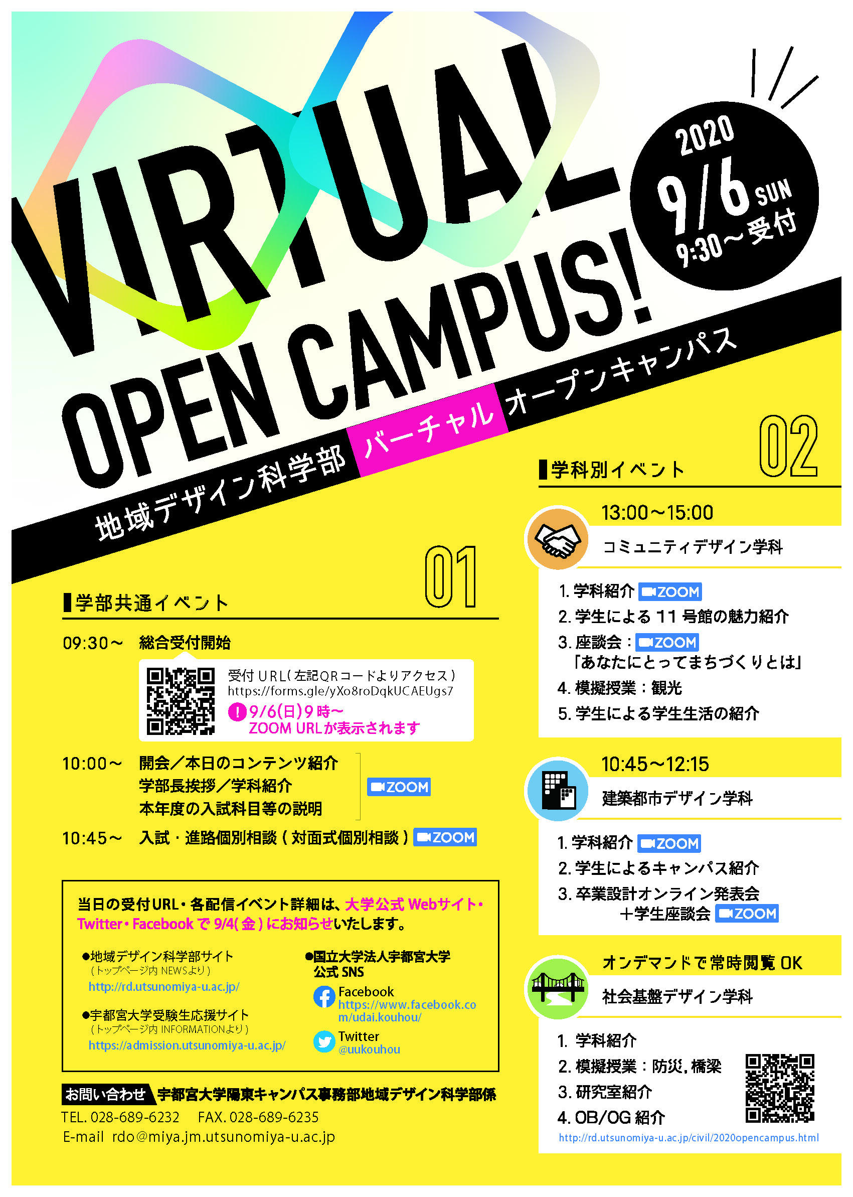 9/6(日)10時スタートの地域デザイン科学部バーチャルオープンキャンパス総合受付のURLをお知らせします。