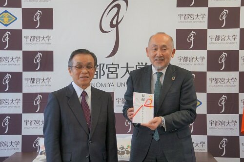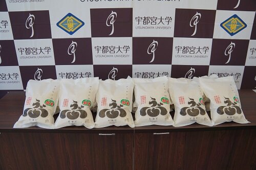 このたび、農学部峰ヶ丘同窓会から、新型コロナウイルス感染症の影響により収入が減少した学生に対する生活支援として、米「ゆうだい21」2㎏を1000袋無償提供いただき、11月17日(水)に学長室において贈呈式を行いました。