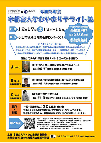申込期限延長 12/12 正午まで【高校生対象】令和4年度「宇都宮大学おやまサテライト塾」を開催します(12/17)