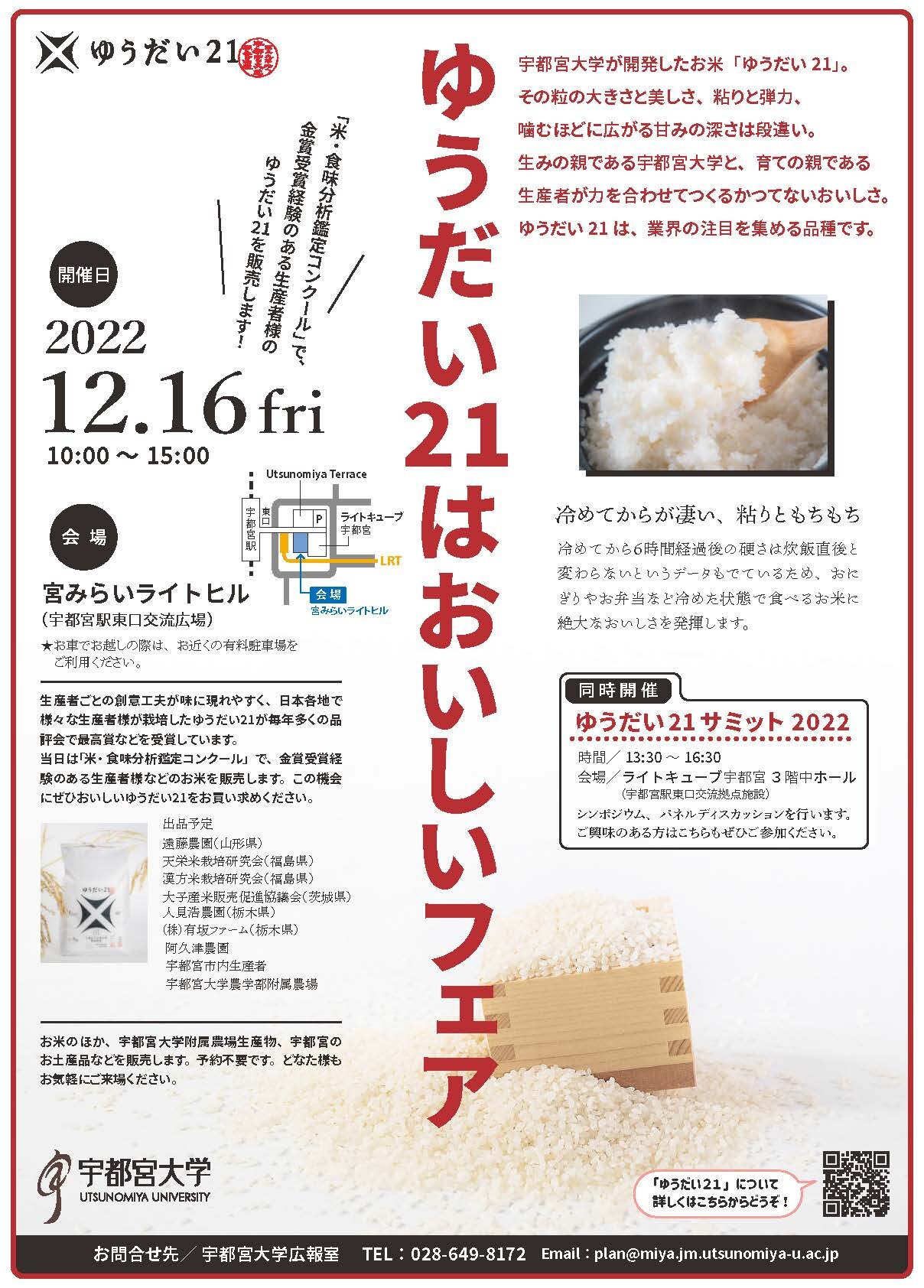 宇都宮大学で開発したお米「ゆうだい21」などを、宮みらいライトヒルで販売します。