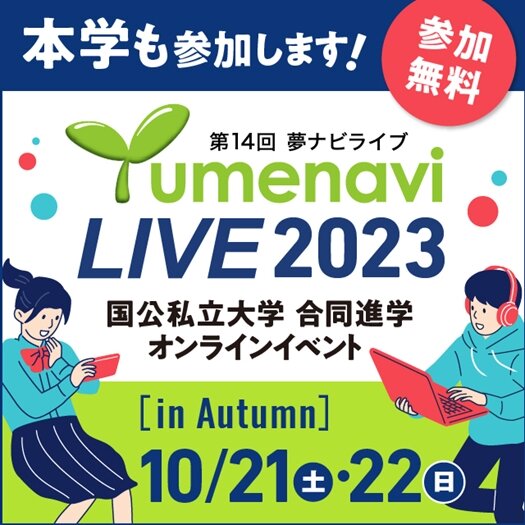 10月21日(土)・22日(日)に、日本最大級の大学進学オンラインイベント「夢ナビライブ2023 in Autumn」に参加します!
